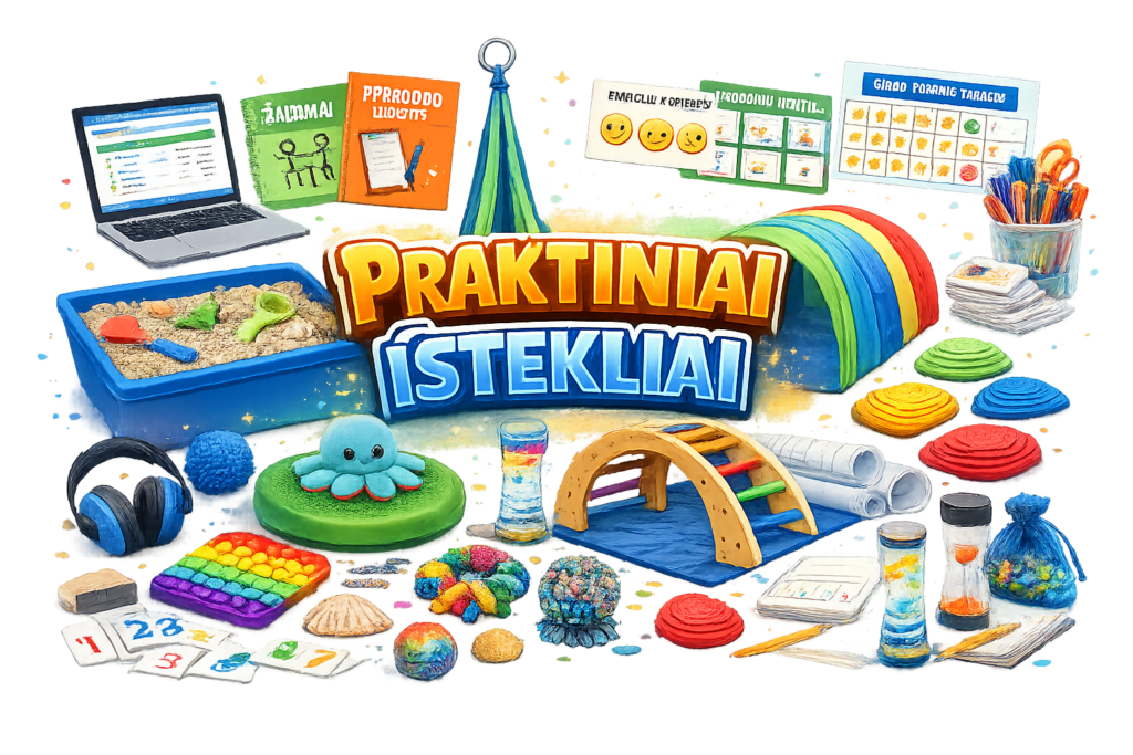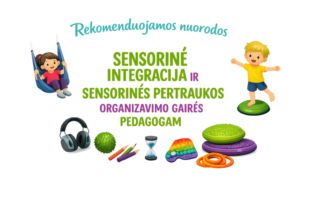 Teorinė ir praktinė informacija pedagogams ir pedagogų padėjėjams apie sensorines pertraukas, taikomas veiklas, kurias galima atlikti mokykloje pamokų ir pertraukų metu.  https://lisc.lt/wp-content/uploads/2025/10/SENSORINE-INTEGRACIJA-IR-SENSORINES-PERTRAUKOS-ORGANIZAVIMO-GAIRES-PEDAGOGAMS.pdf